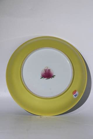 外壁通施的檸檬黃釉,是雍正朝獨有的低溫釉色巔峰:以進口氧化銻為呈色劑,經 700-800℃低溫燒製而成,釉色淺淡清透如鮮檸初綻,瑩潤勻淨無一絲流釉,既區別於傳統鐵黃釉的暗沉,又彰顯皇家專屬的尊貴氣象。底足中心以粉彩繪壽桃形款識,桃實飽滿紅潤,枝葉青翠舒展,上書「雍正年製」四字,將紀年資訊與福壽寓意巧妙融合 —— 壽桃本為西王母長生之象徵,以桃為款既暗合帝王對「福壽綿長、江山永固」的祈願,又讓款識本身成為一件精巧的裝飾小品,盡顯御窯工藝的巧思。