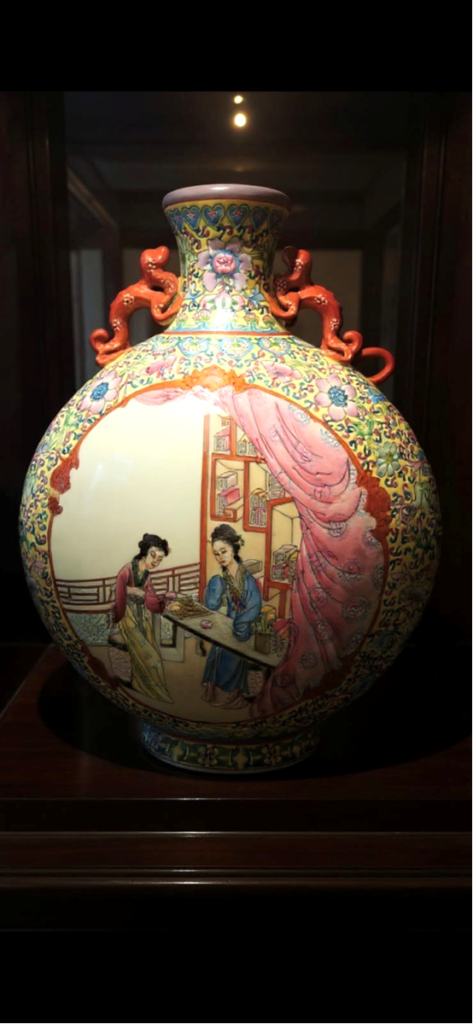 此瓶選用上乘瓷胎,黃地粉彩光澤溫潤細膩,粉彩色澤明亮鮮潤,歷經歲月仍層次分明,充分展現乾隆宮廷瓷器藝術的尊貴與神秘。每條金彩線、每瓣花卉、每個螭龍耳都低語皇宮深處的秘境傳說,寓意吉祥,散發文化與權威韻味。存世稀少,收藏門檻極高,既是藝術鑑賞至高標的,更是一件承載歷史、宮廷精神與神秘儀式的絕對重器。